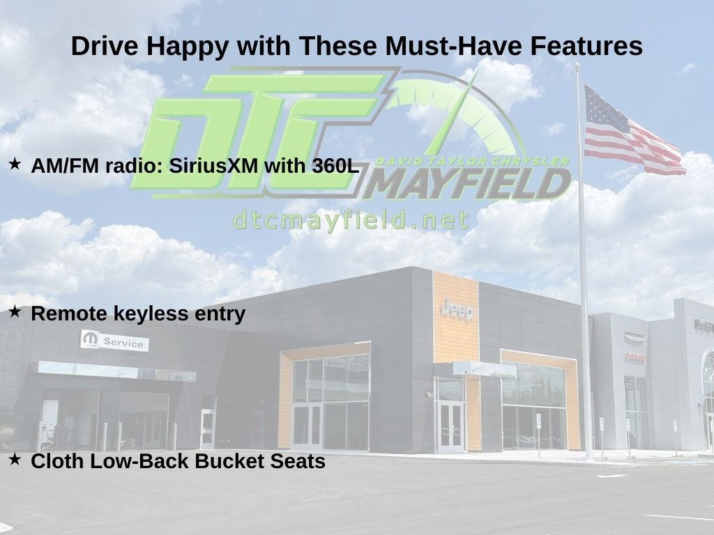 12.3" Touchscreen Display, 4G LTE Wi-Fi Hot Spot, AM/FM radio: SiriusXM with 360L, Apple CarPlay/Android Auto, Cloth Low-Back Bucket Seats, Enhanced Adaptive Cruise Control, Front fog lights, ParkView Rear Back-Up Camera, Remote keyless entry, Wheels: 17" x 7.5" Black Steel Styled, 3.45 Overall Top Gear Ratio, 4-Wheel Disc Brakes, 8 Speakers, ABS brakes, Advanced Brake Assist, Air Conditioning, Apple CarPlay, Automatic Headlamps, Aux Battery, Black 3-Piece Hard Top, Brake assist, Compass, Connectivity - US/Canada, Corning Gorilla Glass, Deep Tint Sunscreen Windows, Delay-off headlights, Driver door bin, Driver vanity mirror, Dual front impact airbags, Dual front side impact airbags, Electronic Stability Control, For More Info, Call 800-643-2112, Freedom Panel Storage Bag, Front anti-roll bar, Front Bucket Seats, Front Center Armrest w/Storage, Front reading lights, Full Speed Forward Collision Warning Plus, Google Android Auto, Illuminated entry, Integrated Center Stack Radio, Integrated roll-over protection, Low tire pressure warning, Myflexcare Service Plan, Non-Lock Fuel Cap Without Discriminator, Normal Duty Suspension, Occupant sensing airbag, Outside temperature display, Overhead airbag, Panic alarm, Passenger door bin, Passenger vanity mirror, Power Heated Mirrors, Power steering, Power windows, Premium Wrapped Steering Wheel, Quick Order Package 24S Sport S, Radio data system, Radio: Uconnect 5 with 12.3" Display, Rear anti-roll bar, Rear reading lights, Rear Window Defroster, Rear Window Wiper/Washer, Security Alarm, SiriusXM Radio Service, SiriusXM with 360L, Speed control, Split folding rear seat, Steering wheel mounted audio controls, Stop-Start Dual Battery System, Sun Visors with Illuminated Vanity Mirrors, Tachometer, Telescoping steering wheel, Tilt steering wheel, Traction control, Trip computer, Variably intermittent wipers, Wheels: 17" x 7.5" Gray, 12.3" Touchscreen Display, 4G LTE Wi-Fi Hot Spot, AM/FM radio: SiriusXM with 360L, Apple CarPlay/Android Auto, Cloth Low-Back Bucket Seats, Enhanced Adaptive Cruise Control, Front fog lights, ParkView Rear Back-Up Camera, Remote keyless entry, Wheels: 17" x 7.5" Black Steel Styled. Price does not include Tax, Title, or License fees. Price may include Manufacturer Rebates and Incentives. Buyer must meet certain conditions to qualify when applicable. $1000 - 2026 Great Lakes BC Loyalty Bonus Cash. Exp. 03/02/2026 $1000 - 2026 National Stellantis Loyalty Bonus Cash . Exp. 03/02/2026 $500 - 2026 National 2026 First Responder Bonus Cash . Exp. 01/04/2027