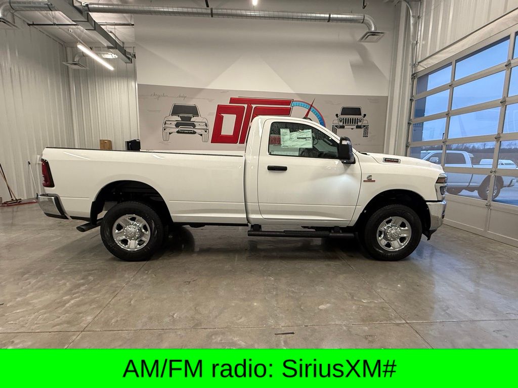 115-Volt Auxiliary Front Power Outlet, 4G LTE Wi-Fi Hot Spot, 5th Wheel/Gooseneck Towing Prep Group, AM/FM radio: SiriusXM, Apple CarPlay/Android Auto, Front fog lights, Heavy Duty Vinyl 40/20/40 Split Bench Seat, Illuminated entry, ParkView Rear Back-Up Camera, Remote Keyless Entry, Remote USB Port - Charge Only, 4 Speakers, 4-Wheel Disc Brakes, 40/20/40 Split Bench Seat, 400W Inverter, ABS brakes, Air Conditioning, Apple CarPlay, Bed Utility Group, Black Exterior Mirrors, Black Wheel Center Hub, Brake assist, Bright Front Bumper, Bright Rear Bumper, Center Hub, Chrome Appearance Group, Chrome Grille Surround, Clearance Lamps, Compass, Connectivity - US/Canada, Delay-off headlights, Driver door bin, Dual front impact airbags, Dual front side impact airbags, Electronic Stability Control, Exterior 115V AC Outlet, Exterior Mirrors Courtesy Lamps, Exterior Mirrors with Heating Element, Exterior Mirrors with Supplemental Signals, For Details Visit DriveUconnect.com, For More Info Call 800-643-2112, Front 1-Touch Down Power Windows, Front anti-roll bar, Front Armrest with Cupholders, Front Center Armrest w/Storage, Front License Plate Bracket, Front reading lights, Fully automatic headlights, Global Telematics Box Module, Google Android Auto, GPS Antenna Input, Integrated Voice Command with Bluetooth, LED Bed Lighting, Low tire pressure warning, Manual Adjust 4-Way Driver Seat, Manual Adjust 4-Way Front Passenger Seat, Manual Folding Exterior Mirrors, Manuarl Telescoping Mirrors, Matte Black Mesh with Chrome Grille, Mirror Running Lights, Mopar Black Tubular Side Steps, MOPAR Deployable Bed Step, MOPAR Front Rubber Floor Mats, MOPAR Spray in Bedliner, MyFlexCare Service Diesel, Occupant sensing airbag, Outside temperature display, Overhead airbag, Overhead console, Passenger door bin, Passenger vanity mirror, Power Adjust Mirrors, Power Heated Folding Telescopic Mirrors, Power steering, Power-Adjustable Convex Aux Mirrors, Quick Order Package 24A Tradesman, Radio data system, Radio: Uconnect 5 with 8.4" Display, Rear anti-roll bar, Rear step bumper, Rear Wheelhouse Liners, Selectable Tire Fill Alert, SiriusXM Radio Service, Speed control, Speed Sensitive Power Locks, Tachometer, Tilt steering wheel, Traction control, Tradesman Power Equipment Group, Upgraded Door Trim Panel, Variably intermittent wipers, Voltmeter, Wheels: 17" x 7.5" Black Steel Styled, Wheels: 18" x 8.0" Steel Chrome Clad, 115-Volt Auxiliary Front Power Outlet, 4G LTE Wi-Fi Hot Spot, 5th Wheel/Gooseneck Towing Prep Group, AM/FM radio: SiriusXM, Apple CarPlay/Android Auto, Front fog lights, Heavy Duty Vinyl 40/20/40 Split Bench Seat, Illuminated entry, ParkView Rear Back-Up Camera, Remote Keyless Entry, Remote USB Port - Charge Only. Price does not include Tax, Title, or License fees. Price may include Manufacturer Rebates and Incentives. Buyer must meet certain conditions to qualify when applicable. $1000 - 2026 National Bonus Cash . Exp. 02/02/2026 $500 - 2026 National 2026 First Responder Bonus Cash . Exp. 01/04/2027