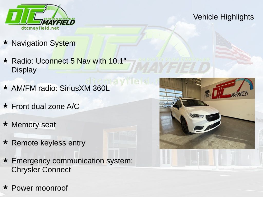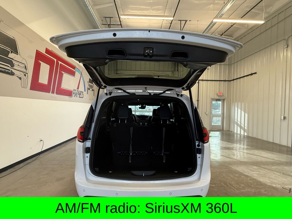 3rd row seats: split-bench, AM/FM radio: SiriusXM 360L, Apple CarPlay/Android Auto, Emergency communication system: Chrysler Connect, Front dual zone A/C, Front fog lights, Heated front seats, Heated rear seats, Heated steering wheel, Memory seat, Nappa Leather Bucket Seats with S Logo, Navigation System, ParkView Rear Back-Up Camera, Power Liftgate, Power moonroof, Radio: Uconnect 5 Nav with 10.1" Display, Remote keyless entry, Ventilated front seats, 13 Speakers, 3.25 Axle Ratio, 4-Wheel Disc Brakes, ABS brakes, Air Conditioning, Alloy wheels, Audio memory, Auto-dimming Rear-View mirror, Automatic temperature control, Brake assist, Bumpers: body-color, Compass, Delay-off headlights, Driver door bin, Driver vanity mirror, Driver's Seat Mounted Armrest, Dual front impact airbags, Dual front side impact airbags, Electronic Stability Control, Four wheel independent suspension, Front anti-roll bar, Front Bucket Seats, Front reading lights, Fully automatic headlights, Garage door transmitter, Heated door mirrors, Illuminated entry, Integrated Active Noise Cancellation, Knee airbag, Low tire pressure warning, Occupant sensing airbag, Outside temperature display, Overhead airbag, Overhead console, Panic alarm, Passenger door bin, Passenger seat mounted armrest, Passenger vanity mirror, Power door mirrors, Power driver seat, Power passenger seat, Power steering, Power windows, Radio data system, Rain sensing wipers, Rear air conditioning, Rear reading lights, Rear window defroster, Rear window wiper, Reclining 3rd row seat, Roof rack, Security system, Speed control, Split folding rear seat, Spoiler, Steering wheel mounted audio controls, Tachometer, Telescoping steering wheel, Tilt steering wheel, Touring Suspension, Traction control, Trip computer, Turn signal indicator mirrors, Variably intermittent wipers, Voltmeter, Wheels: 20" x 7.5" S-Model Aluminum Design 1, 3rd row seats: split-bench, AM/FM radio: SiriusXM 360L, Apple CarPlay/Android Auto, Emergency communication system: Chrysler Connect, Front dual zone A/C, Front fog lights, Heated front seats, Heated rear seats, Heated steering wheel, Memory seat, Nappa Leather Bucket Seats with S Logo, Navigation System, ParkView Rear Back-Up Camera, Power Liftgate, Power moonroof, Radio: Uconnect 5 Nav with 10.1" Display, Remote keyless entry, Ventilated front seats.
