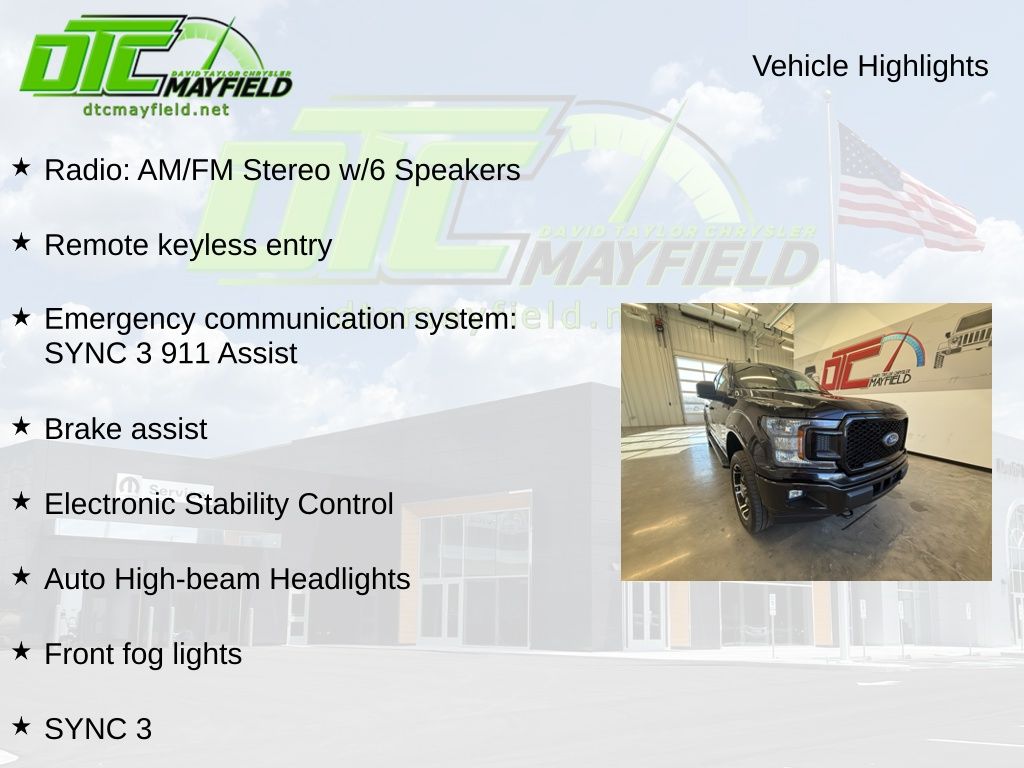 Alloy wheels, Auto High-beam Headlights, Brake assist, Electronic Stability Control, Emergency communication system: SYNC 3 911 Assist, Front fog lights, Illuminated entry, Radio: AM/FM Stereo w/6 Speakers, Remote keyless entry, SYNC 3.