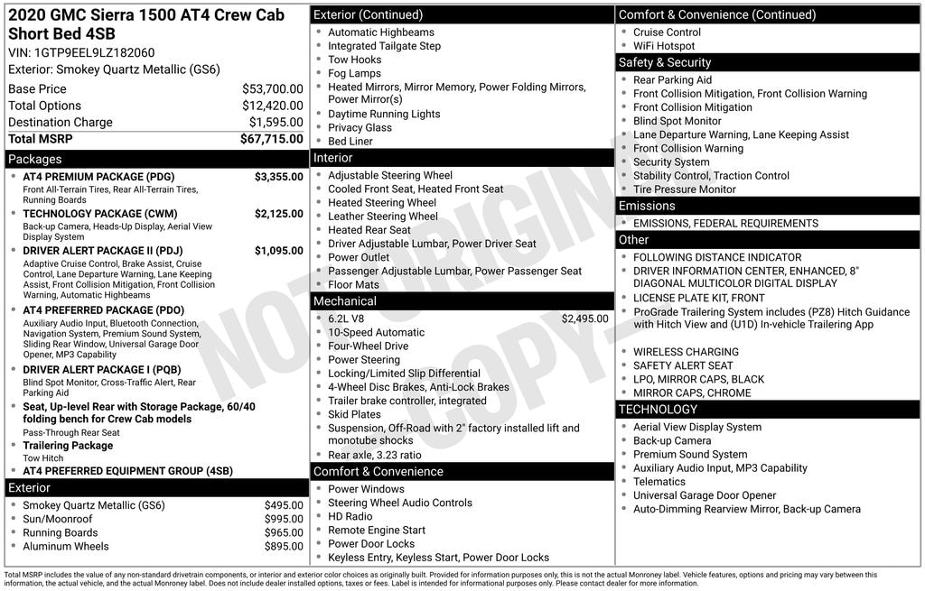 2020 GMC Sierra 1500 AT4 4WD 10-Speed Automatic EcoTec3 6.2L V8 Smokey Quartz Metallic