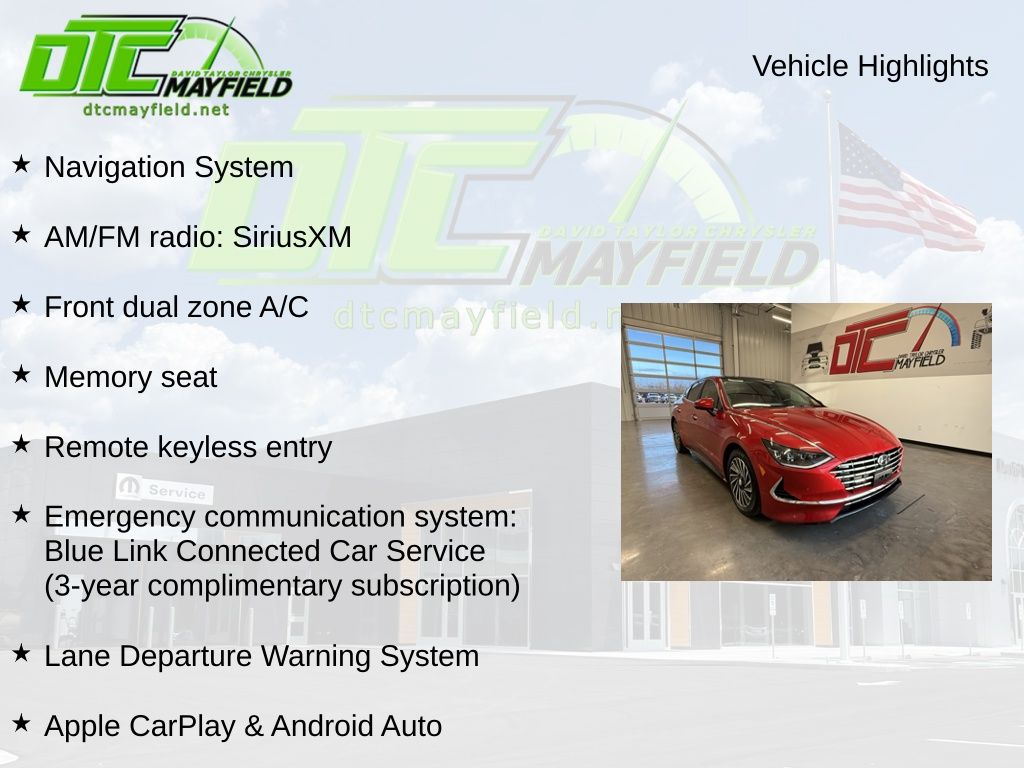 17" x 7.0J Aluminum Alloy Wheels, AM/FM radio: SiriusXM, Apple CarPlay & Android Auto, Emergency communication system: Blue Link Connected Car Service (3-year complimentary subscription), Front dual zone A/C, Heated & Ventilated Front Bucket Seats, Heated steering wheel, Lane Departure Warning System, Leather Seating Surfaces, Memory seat, Navigation System, Remote keyless entry, 12 Speakers, 4-Wheel Disc Brakes, ABS brakes, Air Conditioning, Alloy wheels, Auto High-beam Headlights, Auto-dimming Rear-View mirror, Automatic temperature control, Brake assist, Bumpers: body-color, Carpeted Floor Mats, Delay-off headlights, Driver door bin, Driver vanity mirror, Dual front impact airbags, Dual front side impact airbags, Electronic Stability Control, Four wheel independent suspension, Front anti-roll bar, Front Bucket Seats, Front Center Armrest, Front reading lights, Fully automatic headlights, Garage door transmitter: HomeLink, Heads-Up Display, Heated door mirrors, Heated front seats, Illuminated entry, Knee airbag, Leather steering wheel, Low tire pressure warning, Occupant sensing airbag, Option Group 01, Outside temperature display, Overhead airbag, Overhead console, Panic alarm, Passenger door bin, Passenger vanity mirror, Power door mirrors, Power driver seat, Power passenger seat, Power steering, Power windows, Radio data system, Radio: AM/FM/SiriusXM/MP3 w/Navigation, Rain sensing wipers, Rear anti-roll bar, Rear seat center armrest, Rear side impact airbag, Rear window defroster, Reversible Cargo Tray, Security system, Speed control, Speed-sensing steering, Speed-Sensitive Wipers, Split folding rear seat, Spoiler, Steering wheel mounted audio controls, Telescoping steering wheel, Tilt steering wheel, Traction control, Trip computer, Turn signal indicator mirrors, Variably intermittent wipers, Ventilated front seats, Wheel Locks, 17" x 7.0J Aluminum Alloy Wheels, AM/FM radio: SiriusXM, Apple CarPlay & Android Auto, Emergency communication system: Blue Link Connected Car Service (3-year complimentary subscription), Front dual zone A/C, Heated & Ventilated Front Bucket Seats, Heated steering wheel, Lane Departure Warning System, Leather Seating Surfaces, Memory seat, Navigation System, Remote keyless entry.
