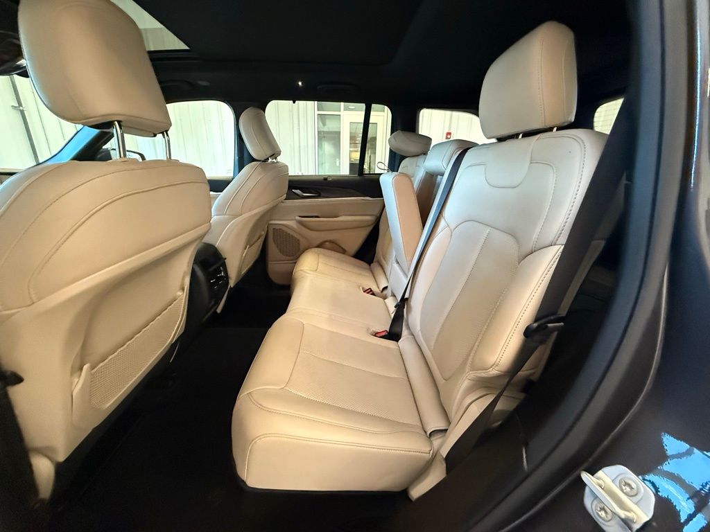 2nd-Row Manual Window Shades, 3.45 Rear Axle Ratio, 4-Wheel Disc Brakes, 6 Speakers, ABS brakes, Active Noise Control System, Air Conditioning, Alloy wheels, AM/FM radio: SiriusXM with 360L, Anti-whiplash front head restraints, Audio memory, Auto High-beam Headlights, Auto-Dimming Exterior Driver Mirror, Automatic temperature control, Brake assist, Bumpers: body-color, Capri Leatherette Seats, Capri Leatherette w/Axis II Seats, Compass, Delay-off headlights, Driver door bin, Driver vanity mirror, Dual front impact airbags, Dual front side impact airbags, Dual-Pane Panoramic Sunroof, Electronic Stability Control, Emergency communication system, Four wheel independent suspension, Front anti-roll bar, Front Bucket Seats, Front Center Armrest w/Storage, Front dual zone A/C, Front fog lights, Front License Plate Bracket, Front reading lights, Front/Rear Doors & Liftgate w/Passive Entry, Fully automatic headlights, Garage door transmitter, Heated door mirrors, Heated front seats, Heated rear seats, Heated steering wheel, Illuminated entry, Integrated Off-Road Camera, Intersection Collision Assist System, Knee airbag, Low tire pressure warning, Luxury Tech Group II, Memory seat, Memory Steering Column, Navigation System, Normal Duty Suspension, Occupant sensing airbag, Outside temperature display, Overhead airbag, Overhead console, Panic alarm, ParkSense Front/Rear Park Assist w/Stop, ParkView Rear Back-Up Camera, Passenger door bin, Passenger vanity mirror, Power door mirrors, Power driver seat, Power Liftgate, Power passenger seat, Power steering, Power Tilt/Telescope Steering Column, Power windows, Quick Order Package 23E, Radio data system, Radio: Uconnect 5 Nav w/10.1" Display, Rain Sensitive Windshield Wipers, Rear anti-roll bar, Rear Back-Up Camera Washer, Rear reading lights, Rear window defroster, Rear window wiper, Rearview Autodim Digital Display Mirror, Remote keyless entry, Security system, Speed control, Speed-Sensitive Wipers, Split folding rear seat, Spoiler, Steering wheel mounted audio controls, Surround View Camera System, Tachometer, Telescoping steering wheel, Tilt steering wheel, Traction control, Trip computer, Turn signal indicator mirrors, Variably intermittent wipers, Ventilated Front Seats, Voltmeter, Wheels: 18" x 8" Polished/Painted Aluminum, Wireless Charging Pad.