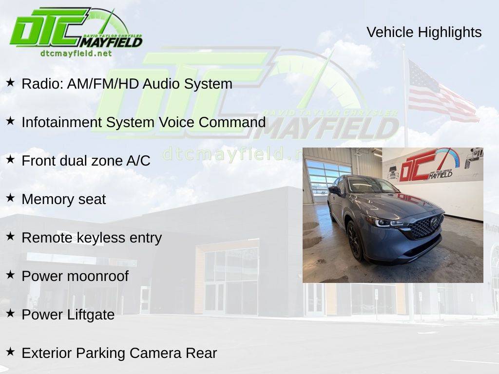 AppLink/Apple CarPlay and Android Auto, Auto High-beam Headlights, Exterior Parking Camera Rear, Front dual zone A/C, Heated Front Bucket Seats, Infotainment System Voice Command, Leather Seat Trim, Memory seat, Power Liftgate, Power moonroof, Radio: AM/FM/HD Audio System, Remote keyless entry, 10 Speakers, 4-Wheel Disc Brakes, ABS brakes, Air Conditioning, Alloy wheels, AM/FM radio, Auto-dimming Rear-View mirror, Automatic temperature control, Brake assist, Bumpers: body-color, Delay-off headlights, Driver door bin, Driver vanity mirror, Dual front impact airbags, Dual front side impact airbags, E911 Automatic Emergency Notification, Electronic Stability Control, Emergency communication system: MAZDA CONNECT, Four wheel independent suspension, Front anti-roll bar, Front Bucket Seats, Front Center Armrest w/Storage, Front reading lights, Fully automatic headlights, Garage door transmitter: HomeLink, Heated front seats, Illuminated entry, Leather Shift Knob, Leather steering wheel, Low tire pressure warning, Multifunction Commander Control, Occupant sensing airbag, Outside temperature display, Overhead airbag, Overhead console, Pandora, Panic alarm, Passenger door bin, Passenger vanity mirror, Power door mirrors, Power driver seat, Power passenger seat, Power steering, Power windows, Radio Broadcast Data System Program Information, Radio data system, Rain sensing wipers, Rear anti-roll bar, Rear reading lights, Rear seat center armrest, Rear window defroster, Rear window wiper, SMS Text Msg Audio Delivery & Reply, Speed control, Speed-sensing steering, Split folding rear seat, Spoiler, Steering wheel mounted audio controls, Tachometer, Telescoping steering wheel, Tilt steering wheel, Traction control, Trip computer, Turn signal indicator mirrors, Variably intermittent wipers, Wheels: 19" x 7J Aluminum Alloy, AppLink/Apple CarPlay and Android Auto, Auto High-beam Headlights, Exterior Parking Camera Rear, Front dual zone A/C, Heated Front Bucket Seats, Infotainment System Voice Command, Leather Seat Trim, Memory seat, Power Liftgate, Power moonroof, Radio: AM/FM/HD Audio System, Remote keyless entry.