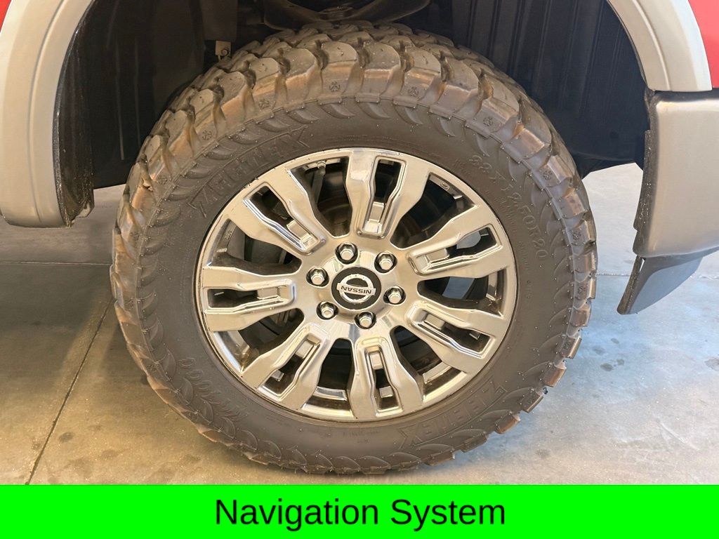 AM/FM radio: SiriusXM, CD player, Front Bucket Seats, Front dual zone A/C, Heated & Cooled Captain's Chairs, Heated rear seats, Heated steering wheel, Memory seat, Navigation System, Premium Leather Seat Trim, Remote keyless entry, 12 Speakers, 3.916 Axle Ratio, 4-Wheel Disc Brakes, ABS brakes, Activation Disclaimer, Air Conditioning, Alloy wheels, Auto tilt-away steering wheel, Auto-dimming door mirrors, Auto-dimming Rear-View mirror, Automatic temperature control, Block heater, Brake assist, Chrome wheels, Compass, Delay-off headlights, Door Sill Kickplates, Driver door bin, Driver vanity mirror, Dual front impact airbags, Dual front side impact airbags, Electronic Stability Control, Emergency communication system, Front anti-roll bar, Front Center Armrest, Front fog lights, Front reading lights, Front wheel independent suspension, Garage door transmitter: HomeLink, Gooseneck Ball, Anchors & Bag, Heated door mirrors, Heated front seats, Illuminated entry, Leather Shift Knob, Leather steering wheel, Low tire pressure warning, Occupant sensing airbag, Outside temperature display, Overhead airbag, Overhead console, Panic alarm, Passenger door bin, Passenger vanity mirror, Platinum Reserve Titan Floor Mats, Power door mirrors, Power driver seat, Power passenger seat, Power steering, Power windows, Radio data system, Radio: NissanConnect w/Navigation & Mobile Apps, Rain sensing wipers, Rear anti-roll bar, Rear seat center armrest, Rear Seat Storage Compartment, Rear step bumper, Rear window defroster, Rockford Fosgate Premium 12 Speaker Audio System, Running Boards, Security system, Speed control, Speed-sensing steering, Speed-Sensitive Wipers, Splash Guards, Split folding rear seat, Steering wheel memory, Steering wheel mounted audio controls, Tachometer, Telescoping steering wheel, Tilt steering wheel, Titan Box Bed Liner w/Built-In Storage (K11), Traction control, Turn signal indicator mirrors, Variably intermittent wipers, Ventilated front seats, Voltmeter, Wheels: 20" x 7.5" Dark Chrome-Like PVD, AM/FM radio: SiriusXM, CD player, Front Bucket Seats, Front dual zone A/C, Heated & Cooled Captain's Chairs, Heated rear seats, Heated steering wheel, Memory seat, Navigation System, Premium Leather Seat Trim, Remote keyless entry.