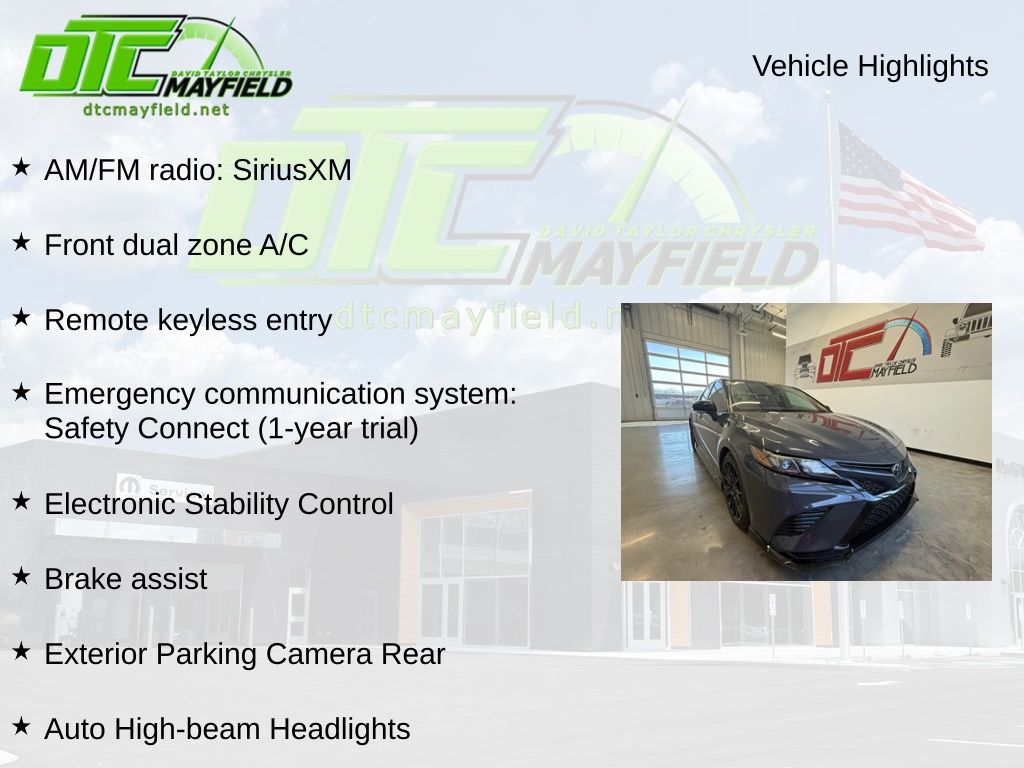 AM/FM radio: SiriusXM, Apple CarPlay/Android Auto, Auto High-beam Headlights, Brake assist, Electronic Stability Control, Emergency communication system: Safety Connect (1-year trial), Exterior Parking Camera Rear, Front Bucket Seats, Front dual zone A/C, Illuminated entry, Remote keyless entry, 4-Wheel Disc Brakes, ABS brakes, Air Conditioning, Alloy wheels, Automatic temperature control, Bumpers: body-color, Delay-off headlights, Driver door bin, Driver vanity mirror, Dual front impact airbags, Dual front side impact airbags, Four wheel independent suspension, Front anti-roll bar, Front Center Armrest, Front reading lights, Fully automatic headlights, Heated door mirrors, Knee airbag, Leather steering wheel, Low tire pressure warning, Occupant sensing airbag, Outside temperature display, Overhead airbag, Overhead console, Panic alarm, Passenger door bin, Passenger vanity mirror, Power door mirrors, Power driver seat, Power steering, Power windows, Radio data system, Radio: Audio Plus w/JBL, Rear anti-roll bar, Rear reading lights, Rear seat center armrest, Rear side impact airbag, Rear window defroster, Security system, Speed control, Speed-sensing steering, Spoiler, Steering wheel mounted audio controls, Tachometer, Telescoping steering wheel, Tilt steering wheel, Traction control, Trip computer, Turn signal indicator mirrors, Variably intermittent wipers, AM/FM radio: SiriusXM, Apple CarPlay/Android Auto, Auto High-beam Headlights, Brake assist, Electronic Stability Control, Emergency communication system: Safety Connect (1-year trial), Exterior Parking Camera Rear, Front Bucket Seats, Front dual zone A/C, Illuminated entry, Remote keyless entry.