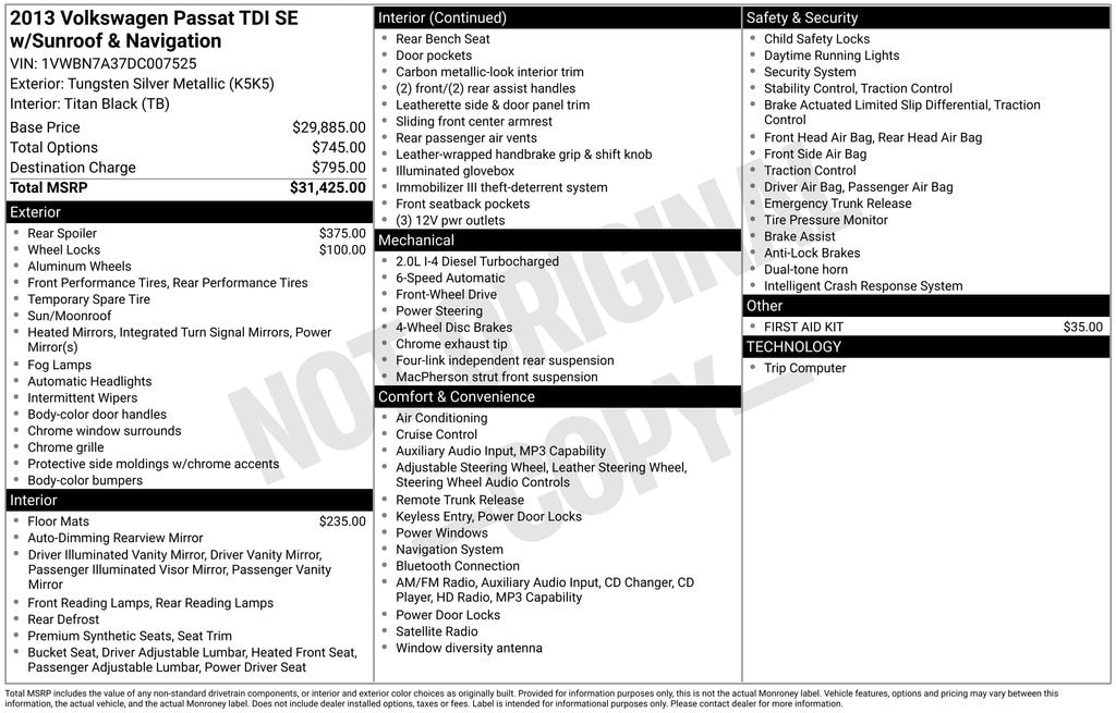 2013 Volkswagen Passat TDI SE FWD 6-Speed 2.0L TDI Turbodiesel Silver